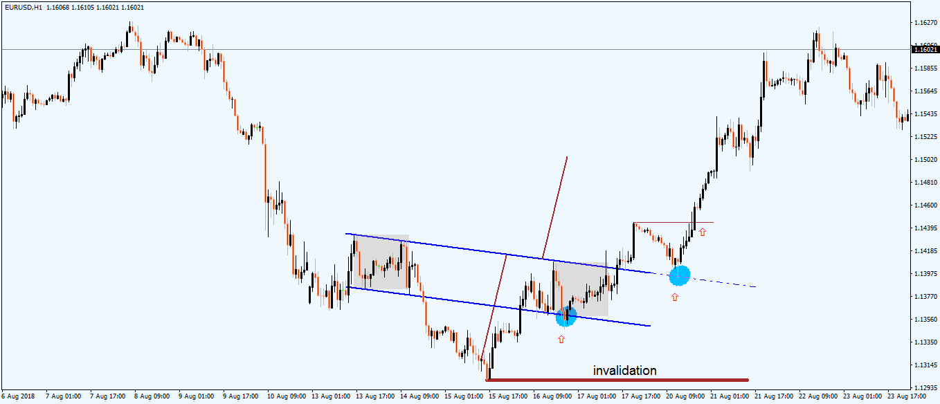 - finally, the third entry appears when the price exceeds the highs in the swing before the neckline’s retest