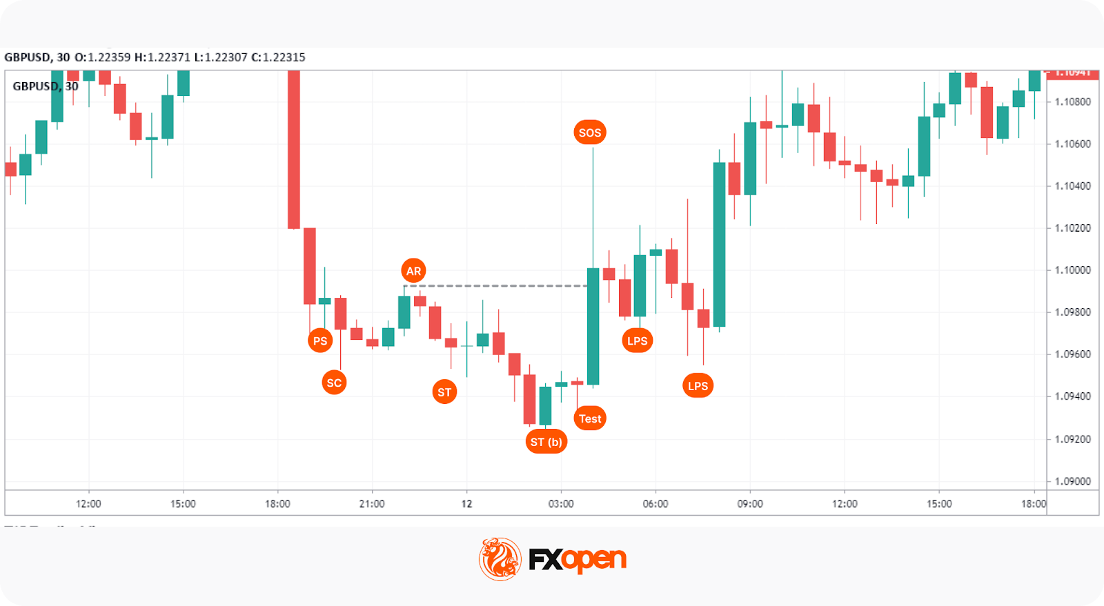 While this might sound like a lot to take in, the cycles can be spotted using the time-tested Wyckoff chart patterns. If you want to test your own understanding, you may use the TickTrader platform with us at FXOpen.