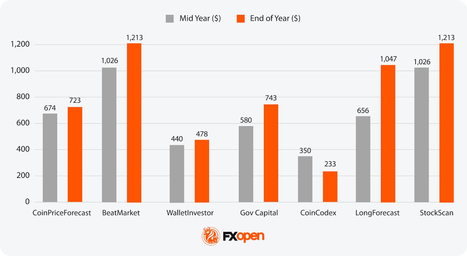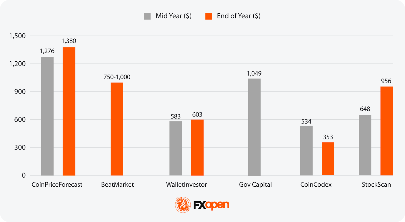 Beyond 2027, the majority of forecasts suggest that Tesla’s share price may fluctuate between $500 and $700 by 2029, which reflects negative dynamics.