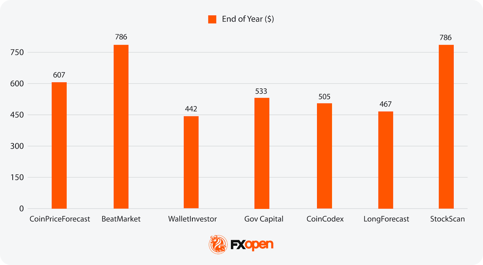 • Most Bullish Projection: 786 (StockScan and BeatMarket)