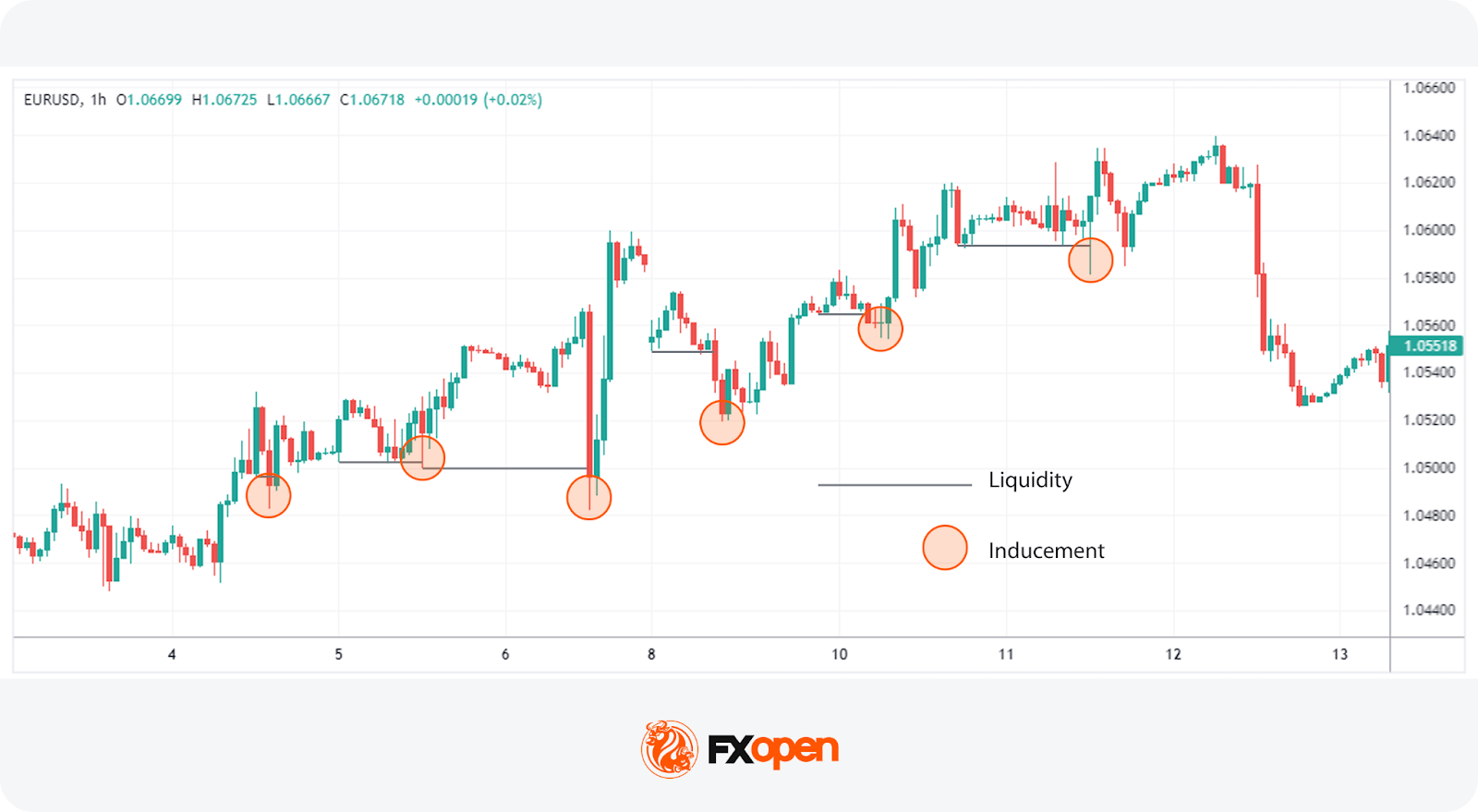 Below, we’ve explained these fundamental ICT trading concepts. To understand them, you can consider following along in FXOpen’s TickTrader platform.