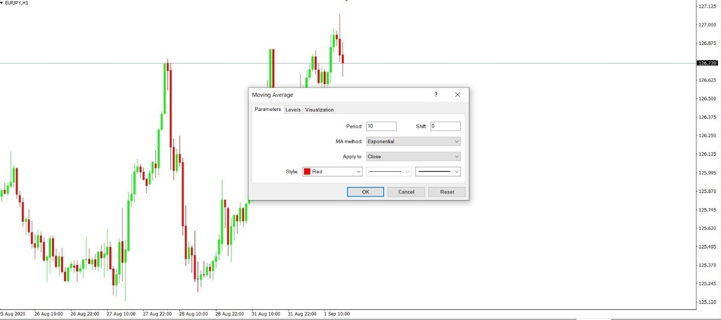 Trading platforms like TickTrader have an exponential moving average indicator that you can automatically apply to your charts. However, it is useful to know how to calculate an EMA to understand its signals.