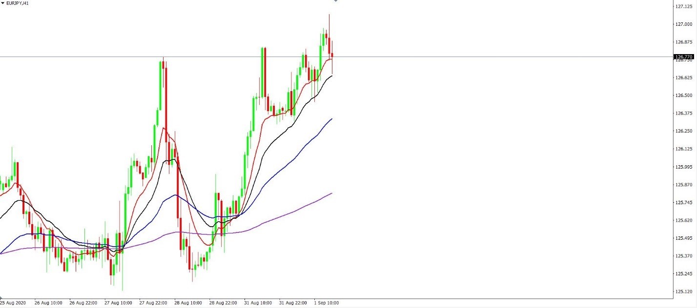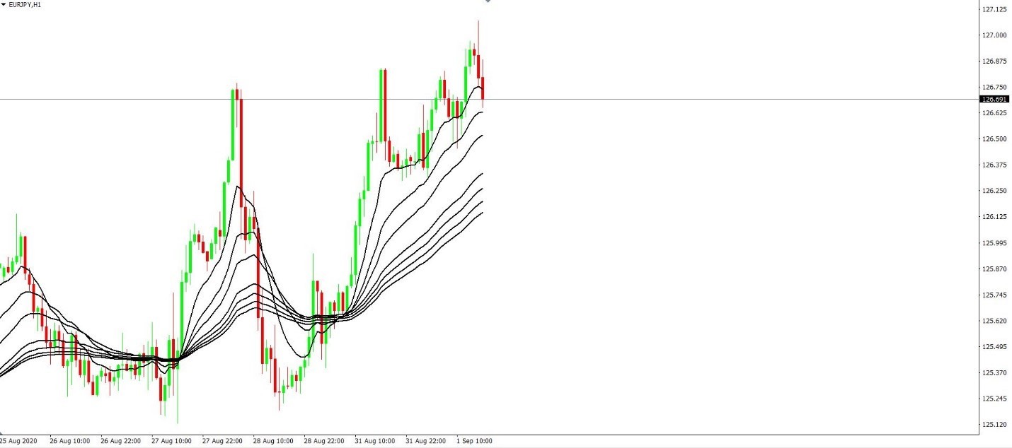 The exponential MA may help you identify support and resistance levels. When the line is below the price in an upward trend, it serves as support, and when it is above the price in a downward trend, it serves as resistance.