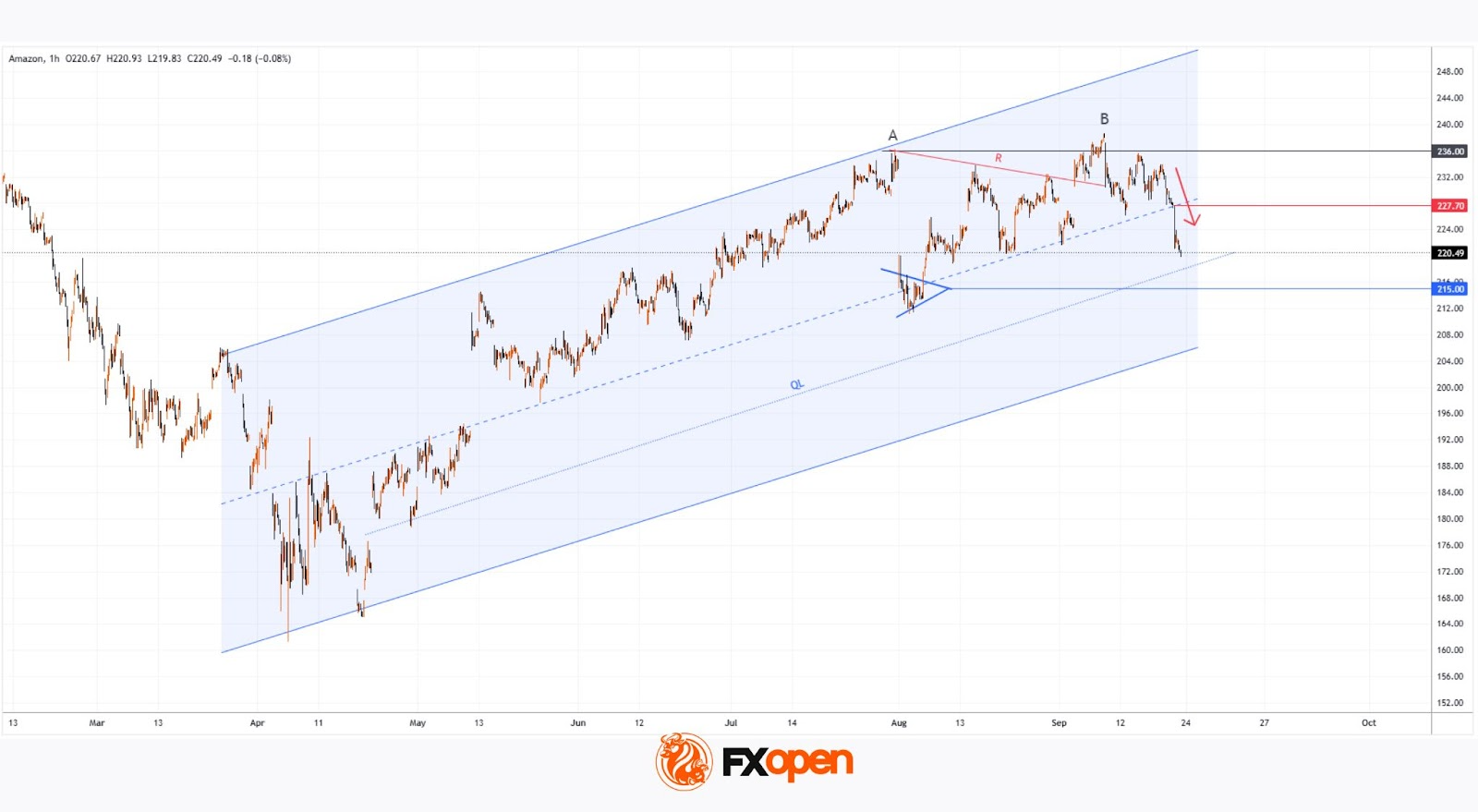Акция Amazon вчера опустилась ниже $220, впервые с 12 августа. Может ли продолжиться снижение?