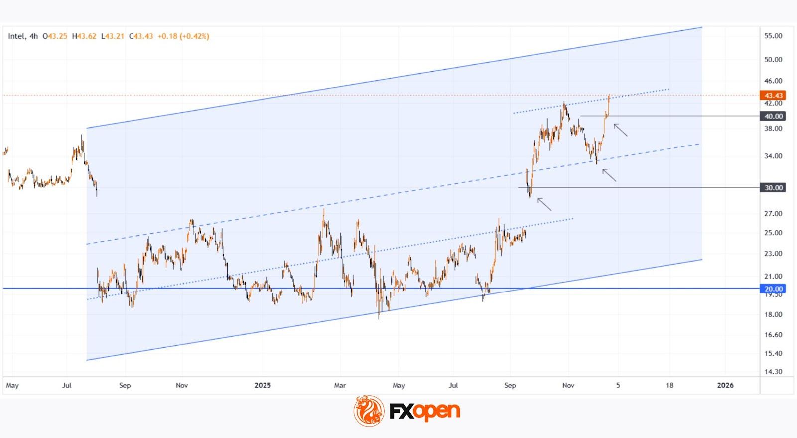 Хотя никаких официальных подтверждений нет, на рынке царит позитив. С начала прошлой недели акция INTC подорожала более чем на 20%, а вчера цена поднялась на максимум с весны 2024 года, закрепляясь над психологическим уровнем $40.