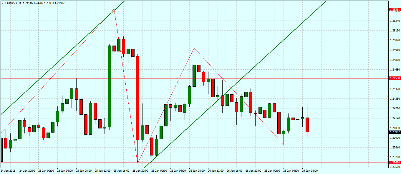 В пятницу курс доллара остановил снижение, хотя остаётся в русле нисходящего тренда. Пара EUR/USD не смогла обновить максимум, но неделя закрылась в плюсе около 1.2400. Сегодня утром евро снизился до 1.2380, и возможность развития коррекции сохраняется, учитывая слишком быстрый рост без особых фундаментальных причин. Курс евро вырос в первую очередь благодаря слабости доллара, хотя благоприятные экономические показатели тоже оказали поддержку. Председатель ЕЦБ Марио Драги мог ослабить евро через вербальные интервенции, но не стал этого делать. По стечению этих обстоятельств европейская валюта чувствует себя уверенно. Сегодня в США выходит статистика по расходам населения. Улучшение показателей может подавить импульс роста евро и усилить коррекцию.