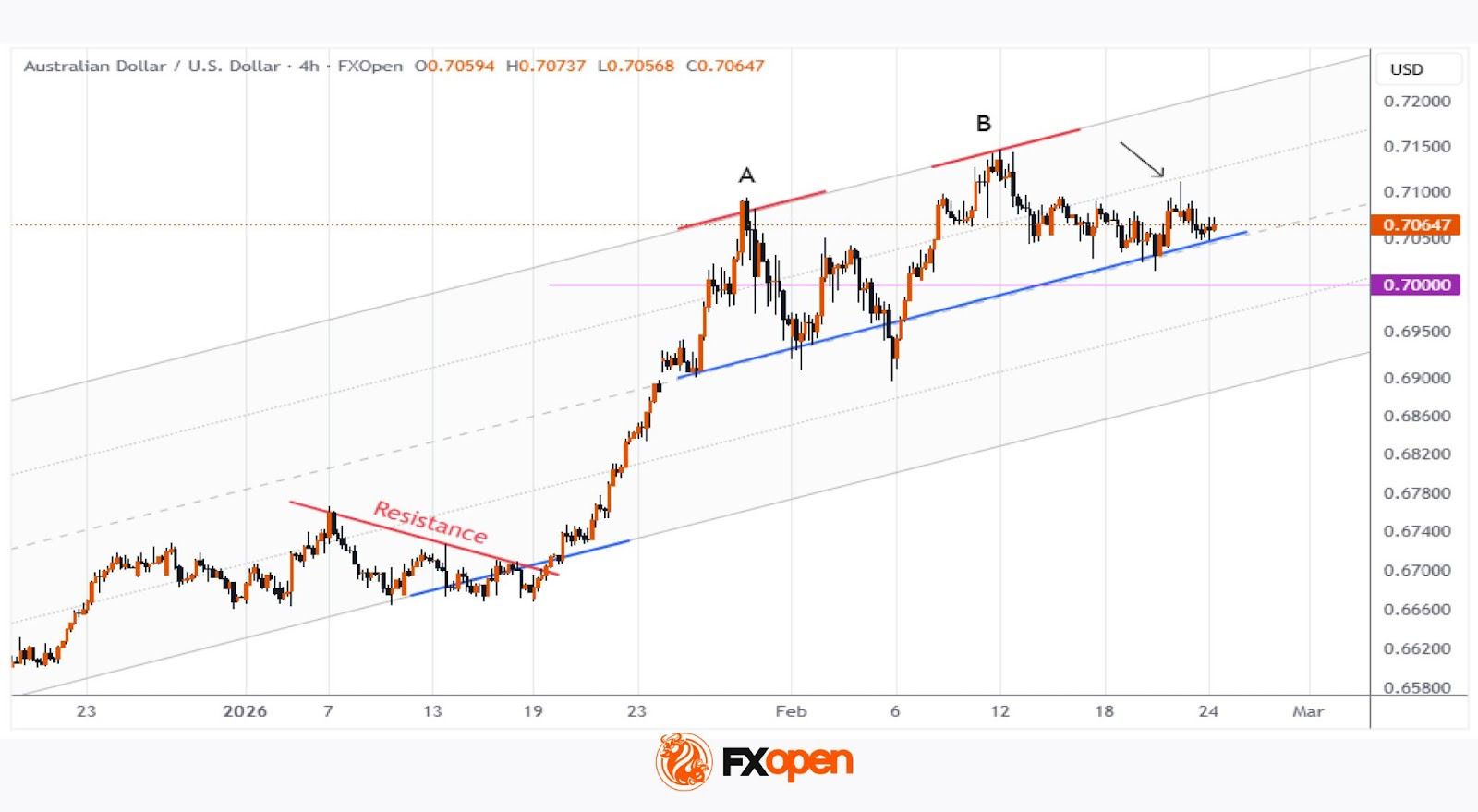 В таком случае не исключен пробой медианы указанного канала с целью тестирования психологической отметки 0.7000.