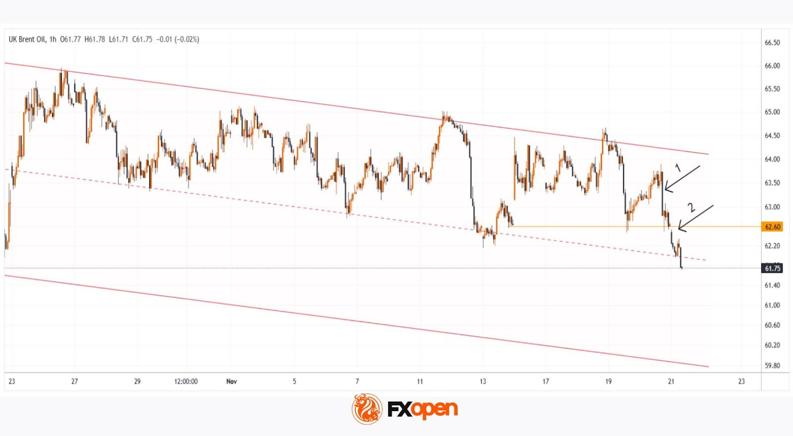 → цена нефти Brent может опуститься в нижнюю половину канала;