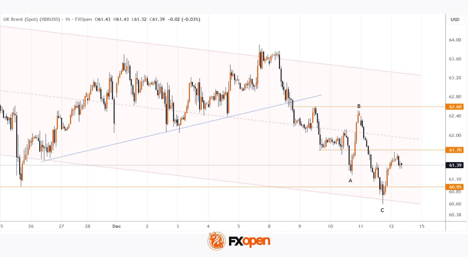 1 декабря мы построили нисходящий канал на графике XBR/USD, а также написали, что медвежья динамика обусловлена ослаблением геополитических рисков. Действительно, надежды на прекращение военного конфликта в Украине (и возможное снятие санкций с России) служило медвежьим драйвером.