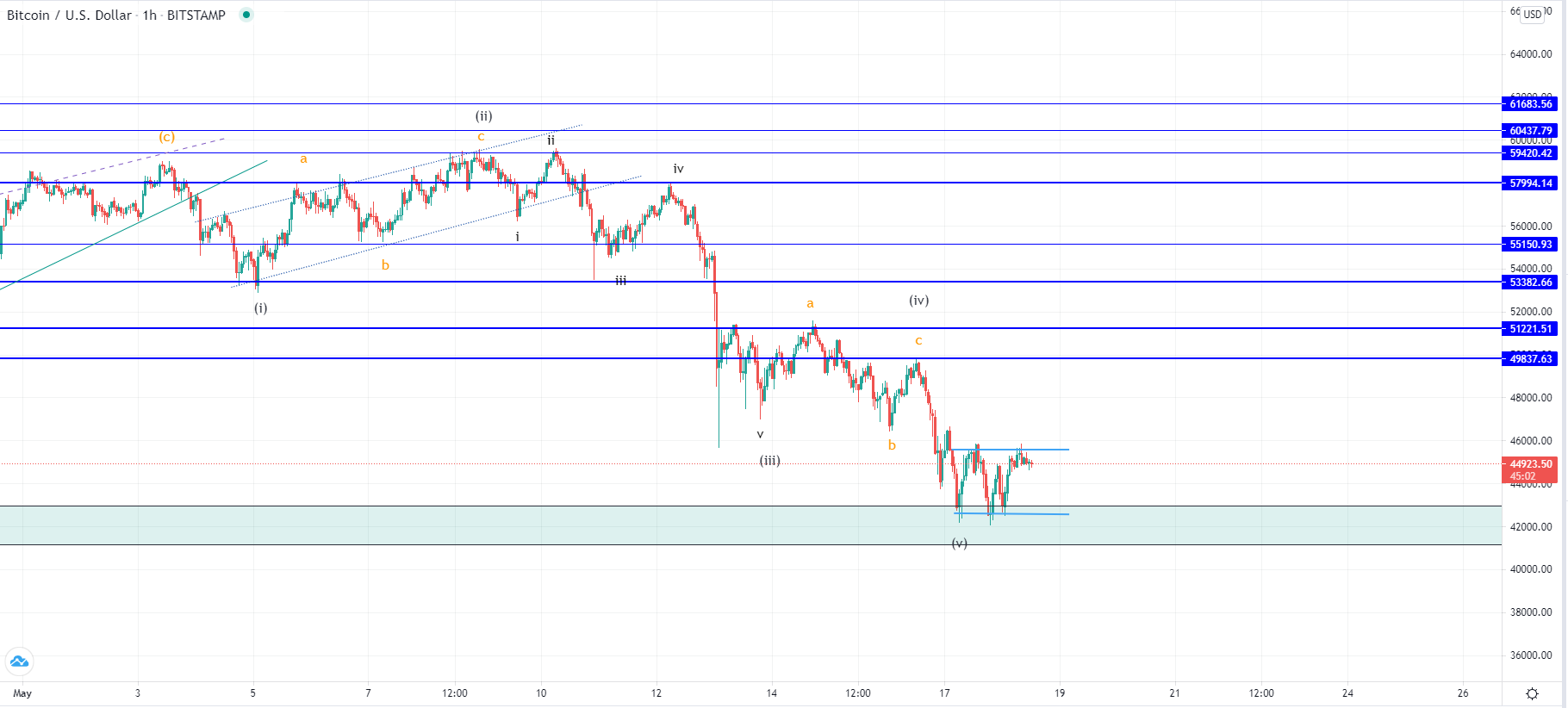 Цена Bitcoin падает с 10 мая, когда она достигла максимума в 59,512$. С этого момента мы наблюдаем снижение на 29,3% до 42,180$ в самой низкой точке. В настоящее время он повторно тестирует эти низкие уровни на предмет поддержки, и, похоже, стабилизировался, предприняв еще одну попытку продолжить нисходящую траекторию, но отскочил от низких уровней. Сейчас Bitcoin немного движется вверх и торгуется на уровне 44,923$.
