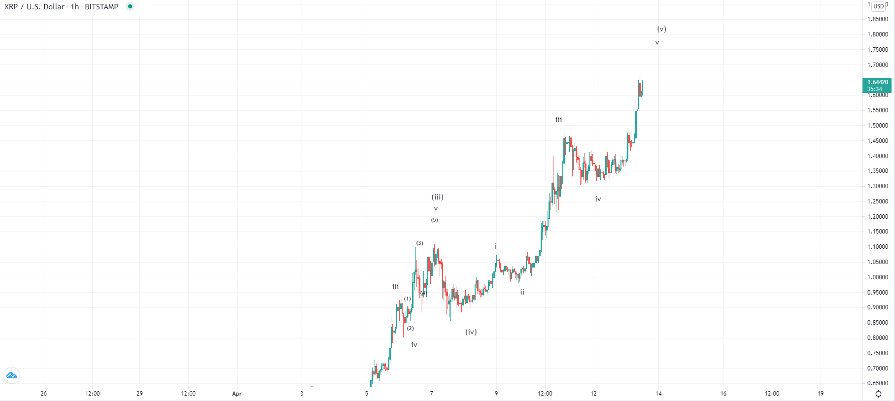 Цена Ripple продолжала расти с прошлой недели и поднялась с 0,857$ в самой низкой точке до $1,656, где она сейчас находится, что составляет рост на 93,13%. Ripple все еще находится в восходящей траектории и с каждым подъемом делает новый максимум.