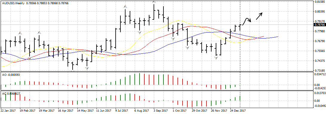 Ближайшее сопротивление расположено у 0.7940-0.7920, поддержка у 0.7840. Несмотря на бурный рост пары, следует быть внимательным у важных диапазонов. “Оззи” растет уже пятую неделю подряд, так что нисходящая коррекция уже не за горами.