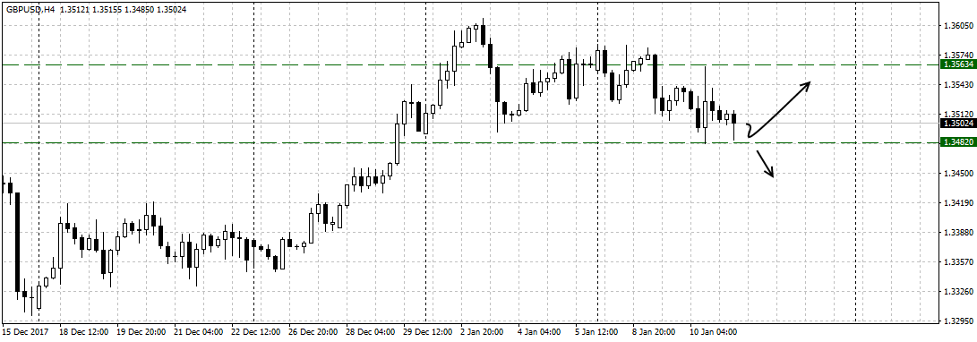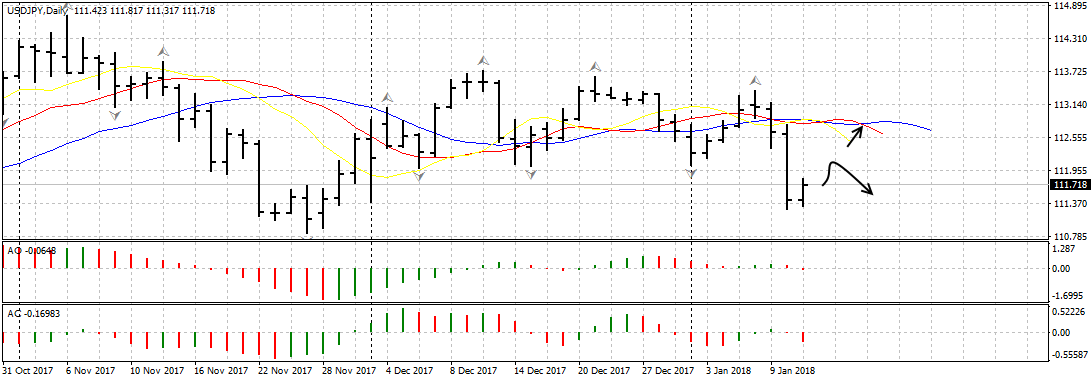 Вторая неделя 2018 года ознаменовалась продолжением нисходящего тренда по доллару, который в скором времени может перерасти в глобальный обвал. Так, доллар/иена, сформировав разворотную комбинацию на продажу 8 января, очень быстро начала ее отработку и на данный момент близка к пробою важного диапазона 111.00-110.80. Данные отметки очень важны для дальнейшего движения пары. В случае пробоя вниз можно будет ожидать теста 109 или даже 108 фигуры. Для отмены нисходящего сценария надо уходить выше 112.40-112.00. Стоит отметить, что недавнее падение пары напрямую связано с решением Банка Японии сократить объем закупки активов впервые с 2016 года. И хотя об ужесточении кредитно-денежной политики речь не идет, инвесторы обращают свой взор в сторону японской валюты.