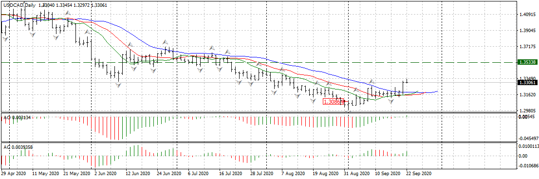 Сдает позиции и канадская валюта. Вчера пара usd/cad прорвала сопротивление у 33 фигуры и тем самым сумела укрепиться выше линий аллигатора на дневном таймфрейме. По торговой стратегии «хаос» у нас успешная отработка разворотного бара от 1 сентября с точкой входа у 1.3090. Дальнейшее ценообразование по паре будет зависеть от того, сумеет ли гринбек вернуть преимущество и от ситуации на нефтяном рынке.