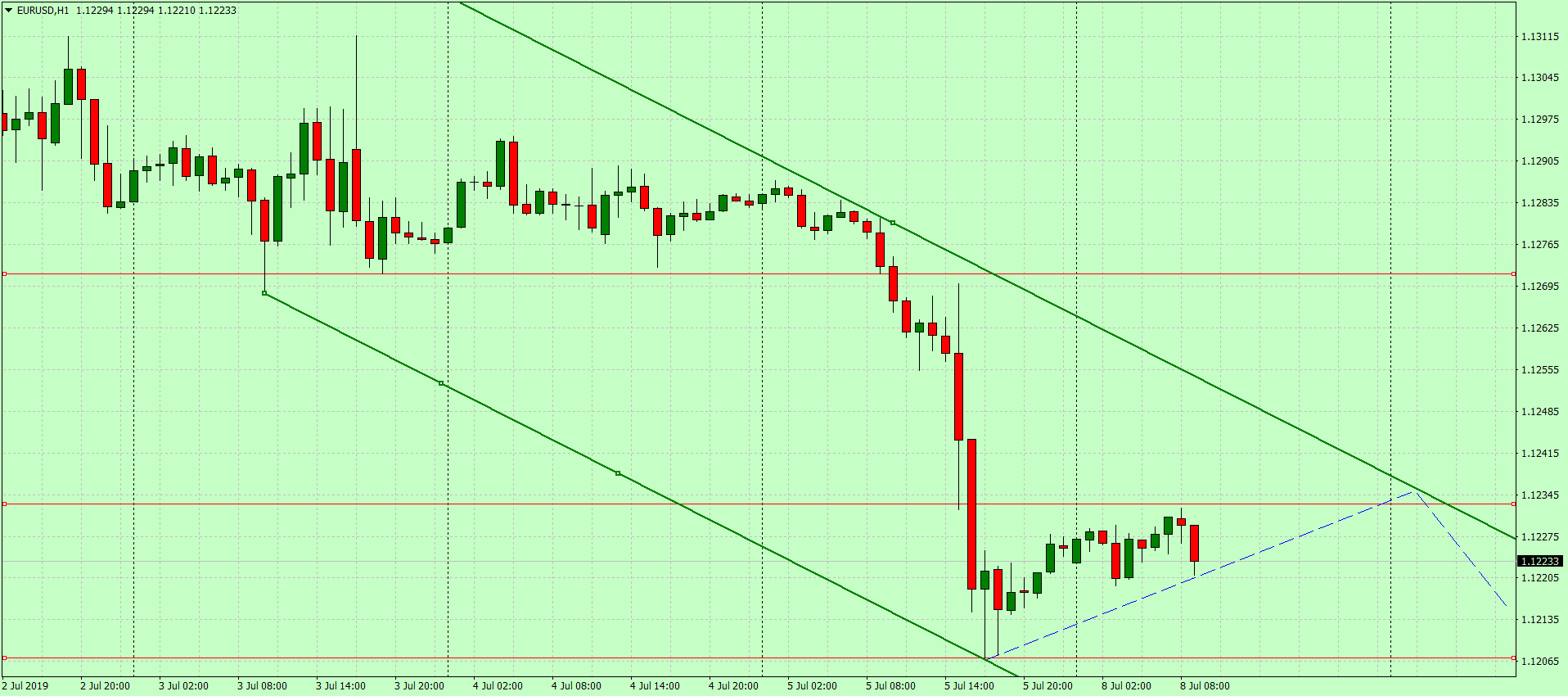 Пара EUR/USD сильно упала в пятницу, обновив локальные минимумы на уровне 1.1207. К закрытию недели курс откатился до 1.1230, а сегодня движется в узком диапазоне около 1.1220. Поводом к появлению уверенной нисходящей динамики послужили сильные данные по американскому рынку труда. Количество новых рабочих мест, созданных в июне, выросло на рекордные 224 тысячи после роста на 72 тысячи в прошлом месяце. Ожидался рост лишь на 160 тысяч, что и так казалось весьма оптимистичной оценкой. При этом уровень безработицы в июне вырос с 3,6% до 3,7%, а средняя почасовая заработная плата не изменилась от прежних 3,1%. Давление на евро также оказали данные из Германии. Объёмы производственных заказов в мае сократились на 2,2% и на 8,6% в годовом исчислении, что оказалось существенно хуже ожидаемых значений. В центре внимания рынка сегодня находится блок макроэкономической статистики из Германии по динамике промышленного производства и торговому балансу за май.