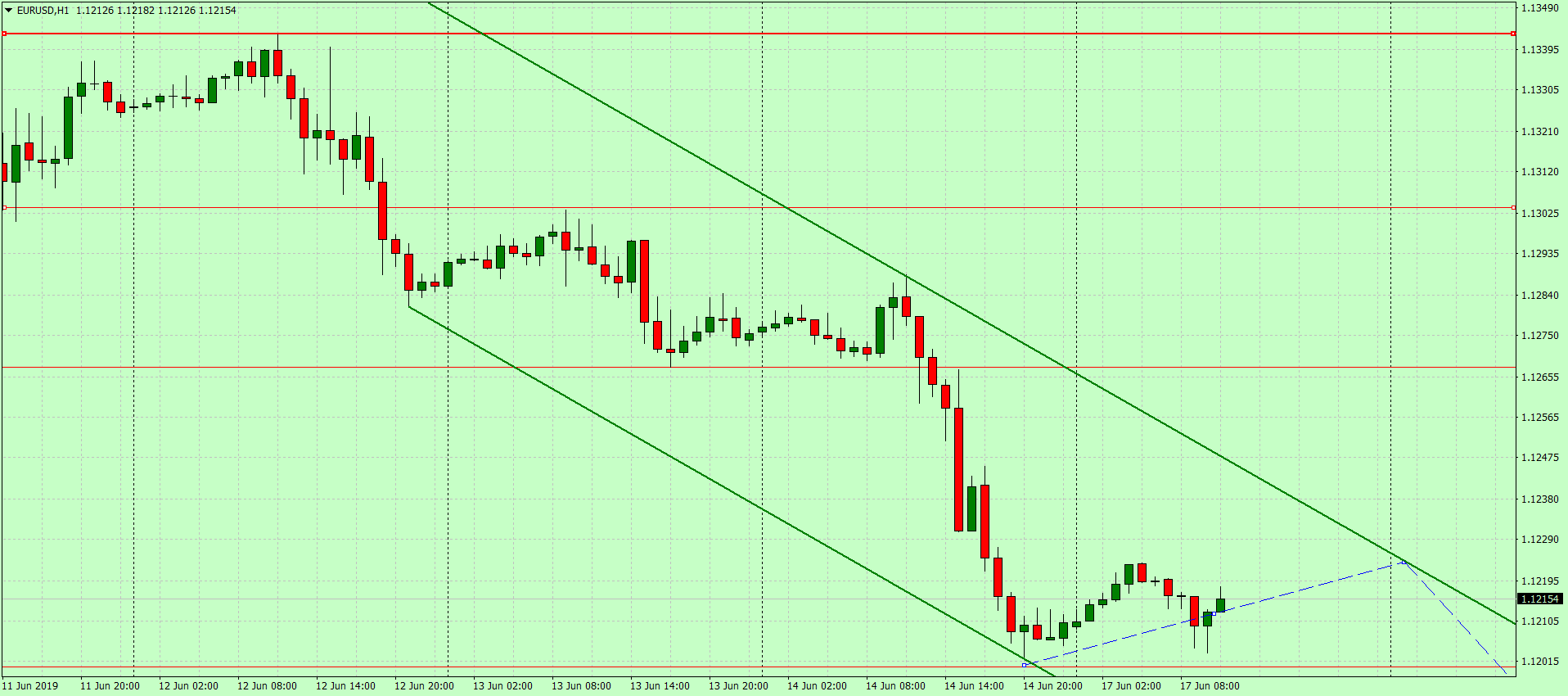 В пятницу пара EUR/USD упала от уровня 1.1288 до 1.1200. Сегодня евро консолидируется в узком диапазоне около 1.1210. Доллар США демонстрировал рост в течение недели, поскольку внимание рынков обратилось к заседанию ФРС на следующей неделе, где ожидаются сигналы на возможное снижение ставок в свете растущих рисков для торговли и глобального роста. Однако статистические данные по розничным продажам показали улучшение за два последних месяца. Это означает, что опасению по поводу роста экономики снижаются и ФРС откажется от смягчения монетарной политики. На евро также давит вопрос долга Италии, который обсуждается министрами финансов ЕС и то, что ЕЦБ не справляется со своей денежно-кредитной политикой. На движения евро может повлиять ежегодный форум в Синтре, Португалия, где будет выступать Президент ЕЦБ Драги. Участники рынков ожидают намёки на снижение ставки или даже покупки облигаций.
