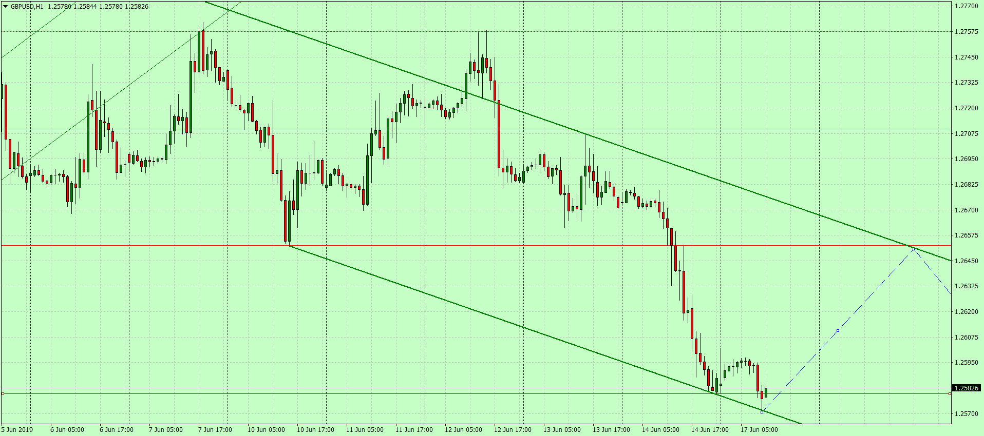 По минимумам прошлой недели сформировался новый нисходящий канал. Сейчас цена отскочила от нижней границы и есть вероятность коррекционного роста к 1.2650.