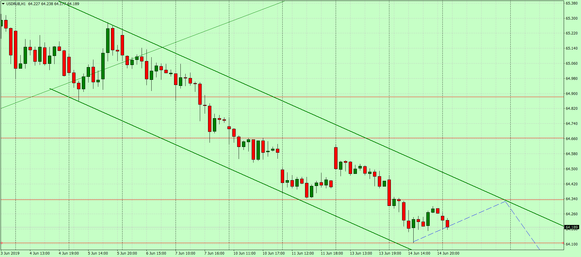 Прежний нисходящий канал сохраняется. Сейчас цена находится посредине канала и может продолжить снижение после приближения к верхней границе.