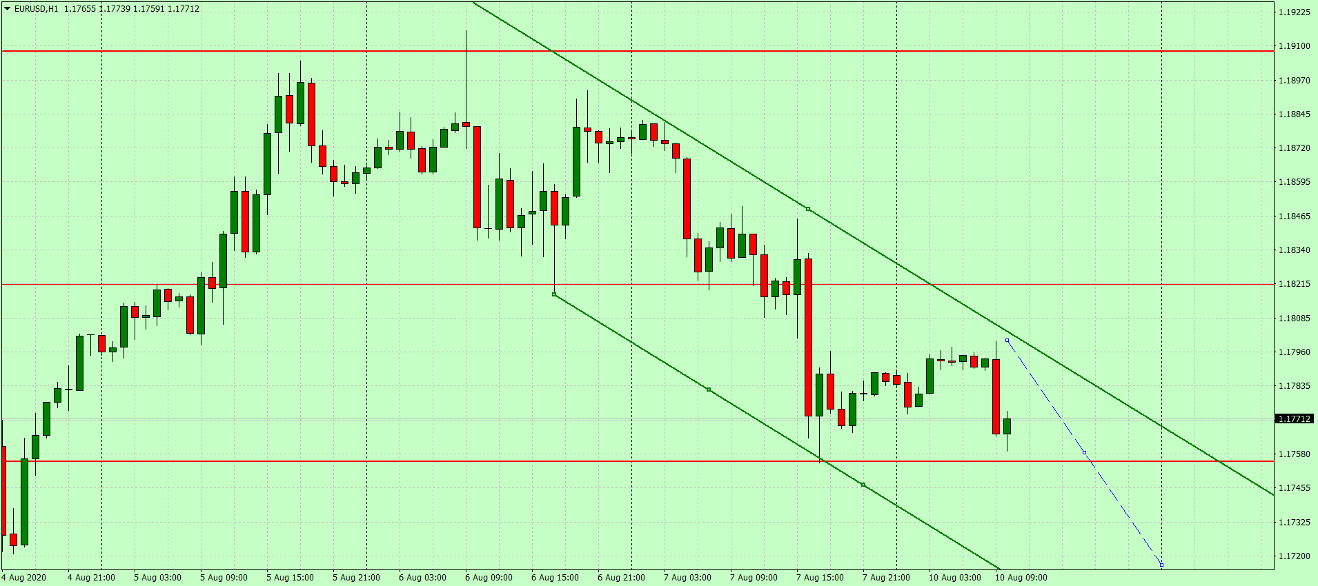 По минимумам прошлой недели сформировался новый нисходящий канал. Цена продолжает падать в пределах нисходящего канала.