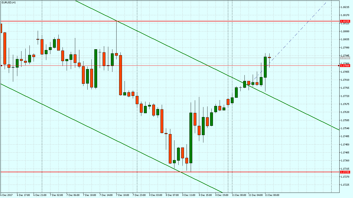 На часовом графике пробита верхняя граница нисходящего канала. Если движение вверх получит развитие, то сформируется новый восходящий канал. Но до преодоления уровня сопротивления на 1.1800 об этом говорить рано.