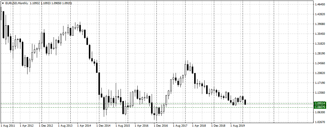 Единая европейская валюта продолжает нести потери. Пара eur/usd не только укрепилась ниже значимого уровня поддержки 1.1000, но и готова к тесту минимума 2019 года у 1.0870. Стоит отметить, что на данный момент цена находится у значимых уровней. В период с 2014 по 2016 год в данном диапазоне были зафиксированы как месячные минимумы, так и месячные максимумы. Так что вполне логично ожидать скорый отбой и коррекцию от текущих отметок. Обрести поддержку единая европейская валюта может уже на этой неделе, если входящий фундамент из еврозоны окажется положительным. Сегодня стоит обратить внимание на выступление Кристин Лагард, а завтра будут опубликованы данные по объему промышленного производства в еврозоне за декабрь.