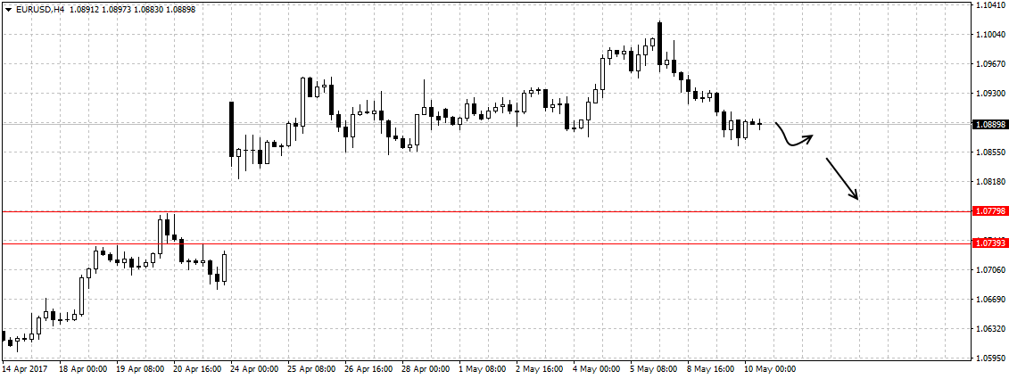 Единая европейская валюта, укреплявшаяся весь апрель и первую неделю мая, сумела потерять за два дня больше 100 пп. Продавцам удалось прорвать оборону покупателей и укрепиться ниже ключевой отметки 1.0900. Если существующая тенденция на рынке сохранится, достижение 1.0800-1.0700 — дело нескольких торговых сессий. Скорее всего, такая ситуация обусловлена тем, что после выборов участники рынка закрывали длинные позиции по евро, и так как прежние проблемы ЕС никуда не исчезли, единая европейская валюта потеряла свою привлекательность для инвесторов. Технически ситуация станет более ясной при достижении диапазона 1.0780-1.0740. Если покупатели сумеют отскочить от упомянутых отметок, это будет означать завершение коррекционного отката и продолжение восходящего движения. Закрепление же ниже 1.0700, в свою очередь, вполне можно определить как провал к 1.0500-1.0400.