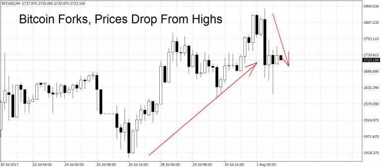 Цены на биткойн достигли максимума в $2892 на FXOpen вчера за несколько часов до хардфорка BCC. Вскоре после этого валюта обрушилась на более чем 200 долларов за менее чем четыре часа.