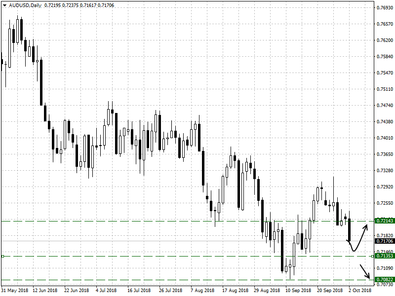 Сырьевые валюты в последнюю неделю торгуются разнонаправленно. Канадскому доллару удалось укрепиться благодаря торговому соглашению между Канадой и США, рубль вырос вместе с нефтью, а вот «оззи» и «киви» пока плетутся в хвосте. Сегодняшнее заседание РБА прошло довольно спокойно и прогнозировано. Ставку оставили на том же уровне, также не изменились дальнейшие планы регулятора по кредитно-денежной политике. Продавцы сумели сломать важную поддержку у 0.7200, следующими отметками для снижения выступают 0.7140-0.7080.