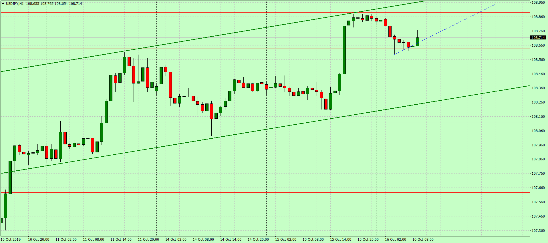 Восходящий канал изменил свою конфигурацию по пику вчерашнего дня. Сейчас цена отошла от верхней границы, но движение вверх продолжается.