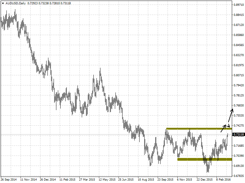 В случае пробоя и ухода выше упомянутых отметок ждем 0.7500-0.7600. Отбой и формирование разворотной комбинации на продажу спровоцирует падение к 0.7000-0.6800.