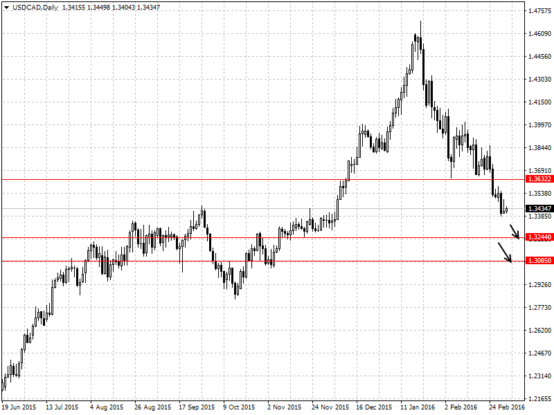 Хорошие времена настали и для канадского доллара. Рост ВВП в четвертом квартале к 0,2% вместо ожидаемого в 0,1% и стабилизация на рынке нефти позволяют луни брать одну вершину за другой. На данный момент падение пары остановлено у довольно сильной поддержки 1.3400. Если данная отметка будет сломлена, ждем пару у 1.3200-1.3000.