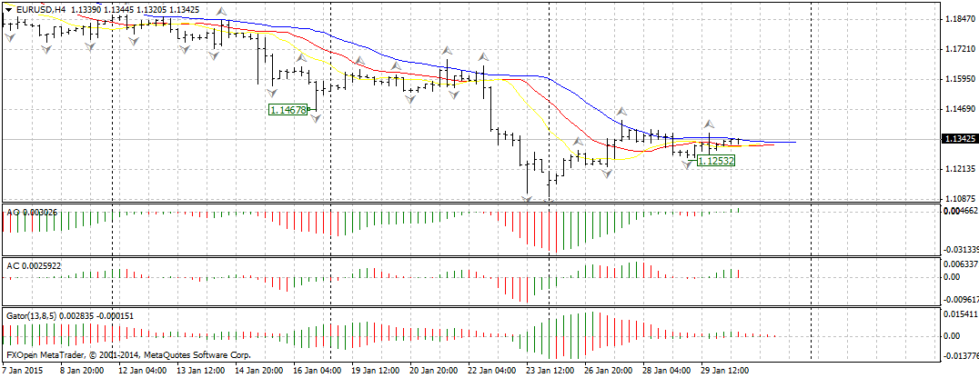 В ожидании выхода упомянутых данных пара eur/usd пытается выбраться из пасти аллигатора. Уверенное закрепление выше 1.1366 приведет к тесту диапазона 1.1400-1.1470. Если же попытка роста окажется неудачной, евровалюту ожидает снижение к диапазону 1.1250-1.1200.