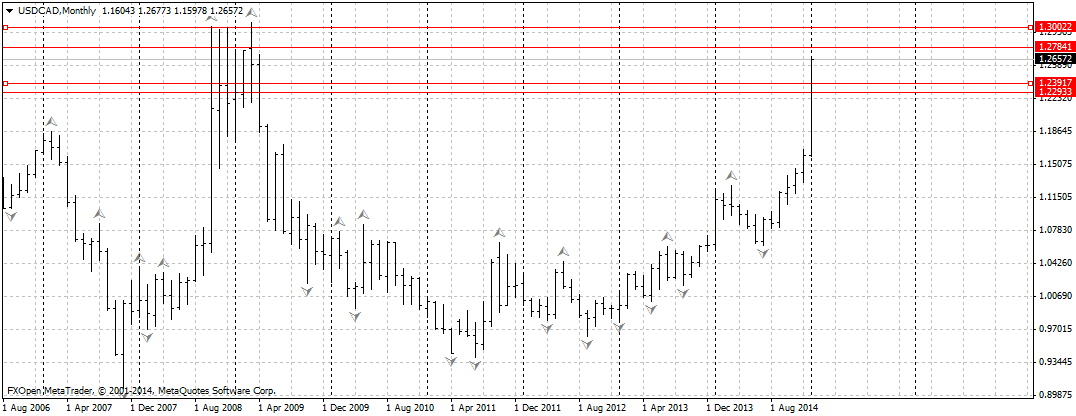 Канадский доллар оправдал прогнозы на падение, о которых было упомянуто в обзоре от 21 января. Снижение ставки и продолжение падения цен на нефть привели к тесту отметки 1.2680. На данный момент пара как никогда близка к максимумам 2008 года, и уровень 1.3000 не выглядит таким уж недосягаемым.