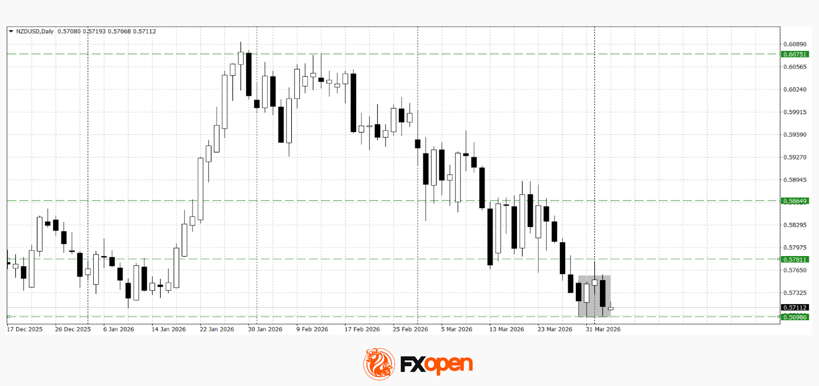 В паре NZD/USD наблюдается боковая торговля в течение нескольких сессий. Покупатели продолжают удерживать поддержку у 0.5700, однако для пробоя вниз и развития нисходящего движения необходим сильный фундаментальный драйвер. В случае закрепления выше 0.5780 возможно развитие более глубокой восходящей коррекции.