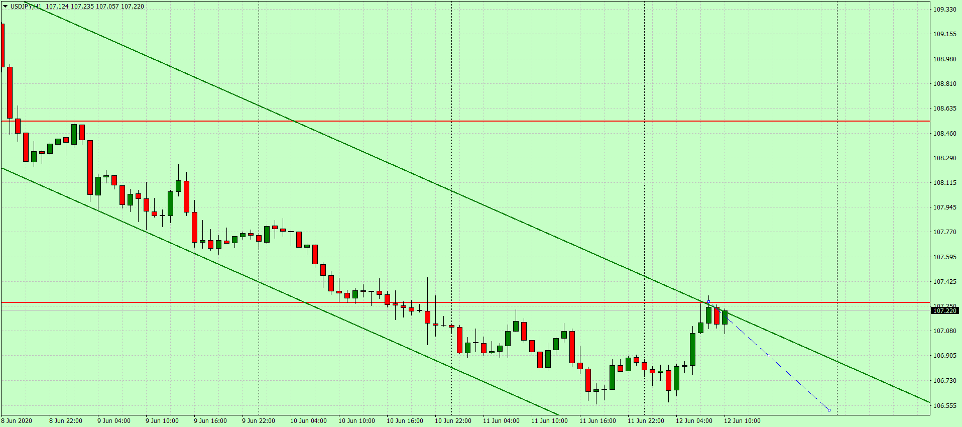 Пара USD/JPY упала в четверг, торгуясь около отметки 106.50 после того, как упала сегодня утром до нового минимума сессии 106.87. Пара оставалась в минусе после вчерашнего заявления ФРС США, который прогнозировал, что экономика США сократится на 6,5% в 2020 году, в то время как уровень безработицы может завершить год на уровне 9,3%. Доллар США показывает активный рост против японской иены в ходе сегодняшней азиатской сессии. Американская валюта прибавляет около 0,33% и тестирует отметку 107.20 вверх. «Бычья» динамика по инструменту пришла на смену четырёхдневному нисходящему ралли, по итогам которого доллар обновил локальные минимумы против иены с 11 мая. Помимо повсеместного укрепления американской валюты давление на позиции иены в пятницу оказывает слабая макроэкономическая статистика из Японии. Так, объёмы промышленного производства в стране по итогам апреля снизились на 15% после снижения на 5,2% в марте. Индекс активности крупных предприятий в производственном секторе во 2 квартале 2020 года снизился с –17,2 до –52,3 пункта.