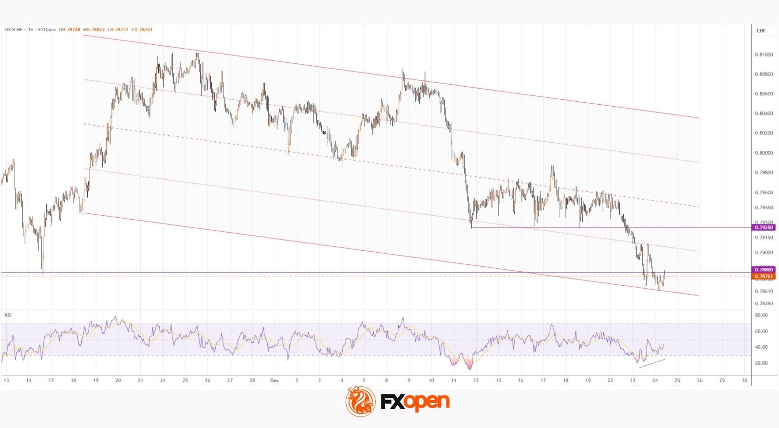 Обратите внимание, что уровень 0.7880 действовал как поддержка в октябре и ноябре. А текущее снижение может оказаться ловушкой для медведей, что в терминологии Smart Money Concept описывается как Liquidity Grab.