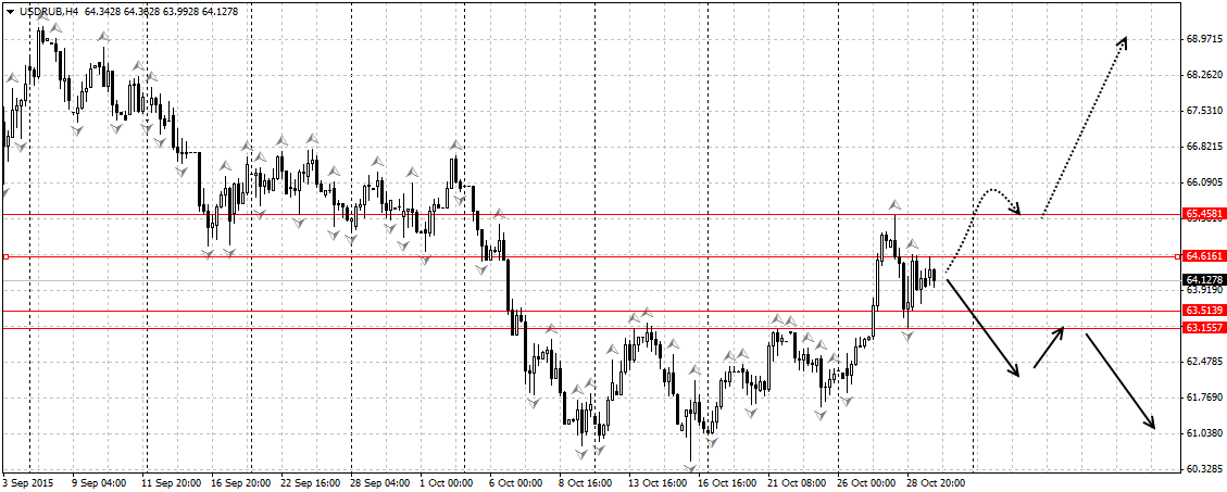 Не менее важный день предстоит и для российской валюты. Как и предполагалось, пара сумела скорректироваться к 63.20, но уйти ниже не получилось, поэтому восходящий вариант еще в силе. Движение вверх ограничено диапазоном 64.60-65.00, а вниз не пускает поддержка на 63.20.