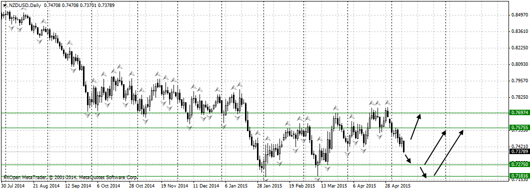 Технически, после пробоя важного уровня поддержки 0.7420, пару можно ждать у диапазона 0.7300-0.7270. Если и эти поддержки будут сломлены, последний рубеж на пути медведей по паре – 0.7200-0.7180. Уход ниже положит начало новому витку снижения с целями 0.7000-0.6700.