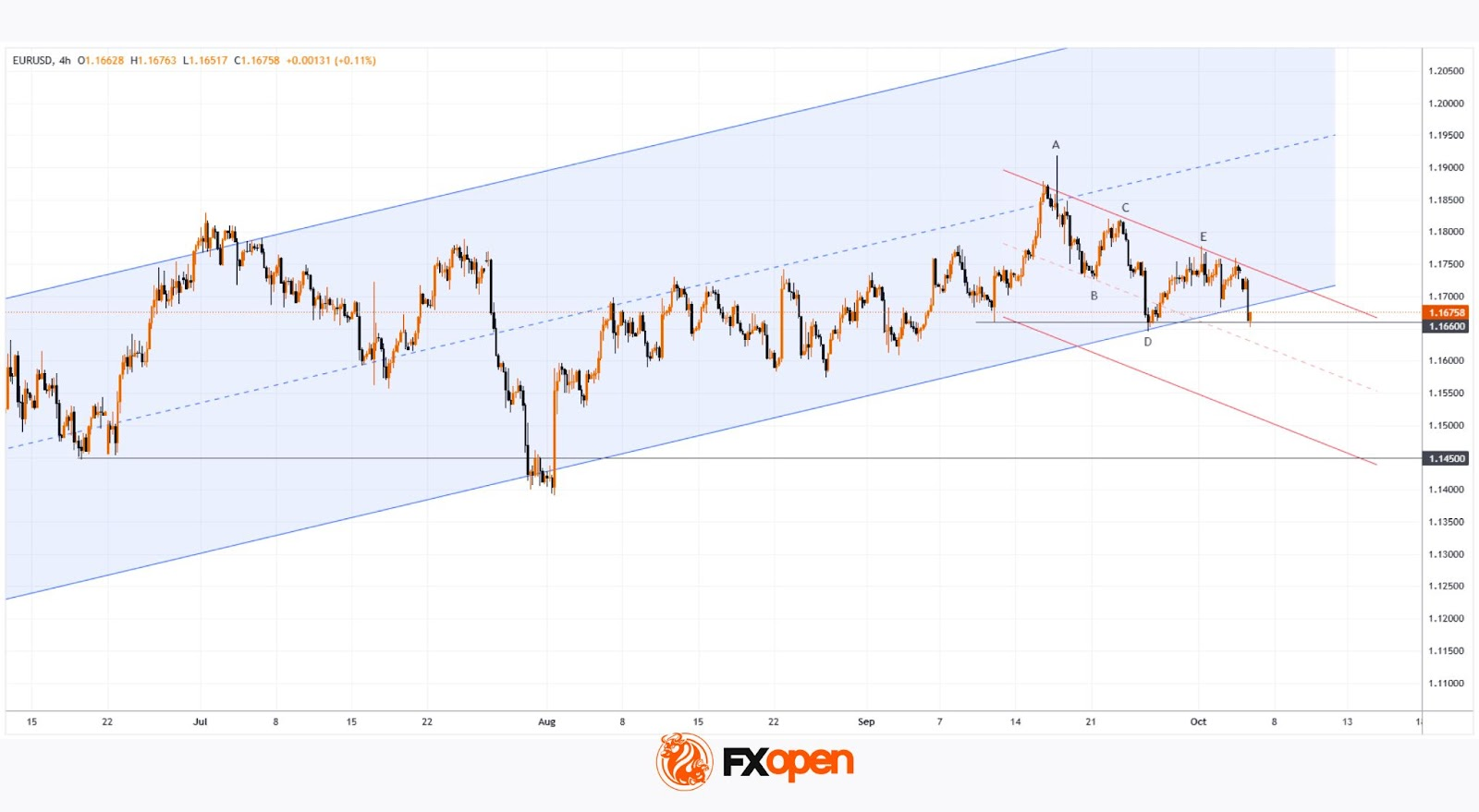 Быки могут надеяться на то, что дальнейшему снижению воспрепятствует уровень 1.16600, который работал поддержкой с первой половины сентября. При этом его медвежий пробой откроет дорогу для снижения курса EUR/USD к важной поддержке 1.14500.