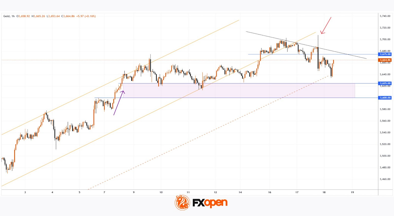 → уровень $3675 сменил роль с поддержки на сопротивление.