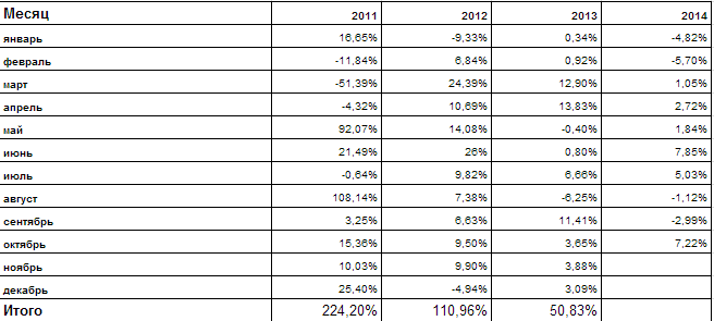 Август и сентябрь 2014 года были не совсем удачные для счета, просадки были небольшими, но инвестор остался без прибыли целых 2 месяца. В связи с этим, проведена оптимизация параметров АТС, увеличена нагрузка, после чего была восстановлена положительная динамика работы счета, что привело к более высокой прибыли за октябрь месяц и перекрыло просадку прошлых месяцев. Команда трейдеров заново перебрала все валютные пары и провела дополнительное тестирование советников. Как следствие, изменены настройки: проведена оптимизация кода и упорядочен контроль над работой счета. По словам управляющего, команда не собирается останавливаться на достигнутом результате и хочет поддерживать работу отлаженной торговой системы. Мониторинг счета можно осуществлять так же через myfxbook.
