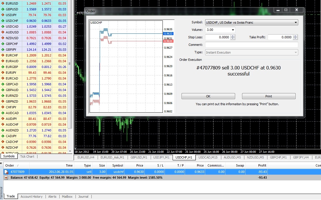 Предположим, клиент открывает короткую позицию (Sell) объемом 3 лота (Рис.1):