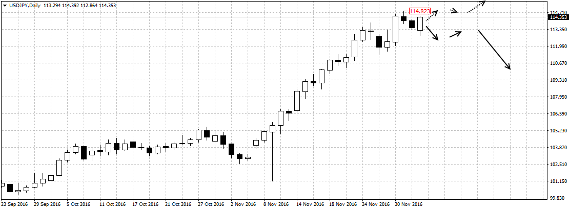 Закрытие сегодняшнего дня определит перспективу пары доллар/иена на текущую неделю. В четверг продавцы пары получили разворотную комбинацию для продаж «падающая звезда», в пятницу комбинация получила подтверждение в виде еще одной медвежьей свечи. Но если сегодня день закроем 114.20, о снижении придется забыть, а цена, скорее всего, пойдет обновлять недавний максимум у 114.80.