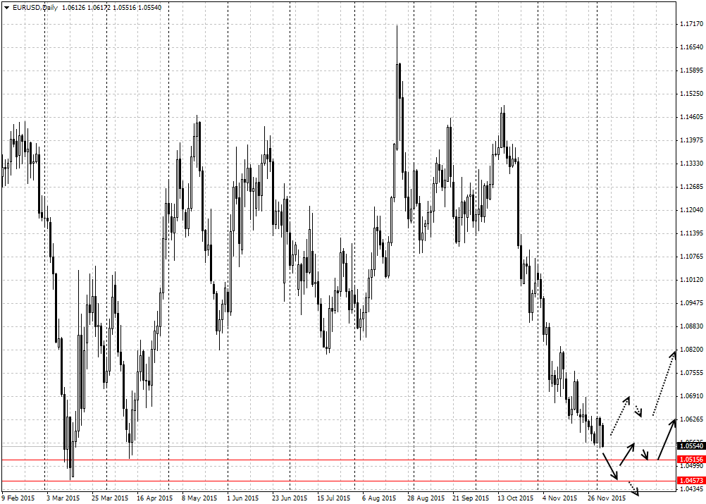 Технически важно, сможет ли цена укрепиться ниже вчерашнего минимума 1.0550. Данный уровень может стать фатальным как для быков, так и для медведей.