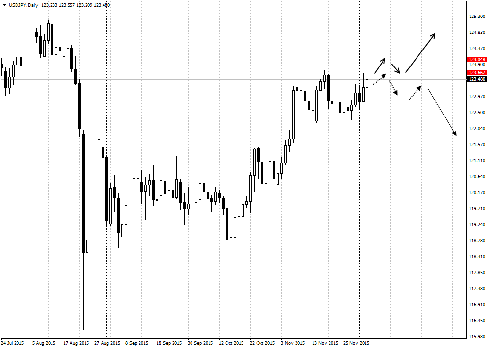 Не теряет надежды на восстановление и японская иена. На данный момент пара у важных рубежей. Формирование разворотной комбинации у 123.70-124.00 имеет хороший потенциал. В то же время укрепление выше будет означать продолжение роста к 125.00-125.40.