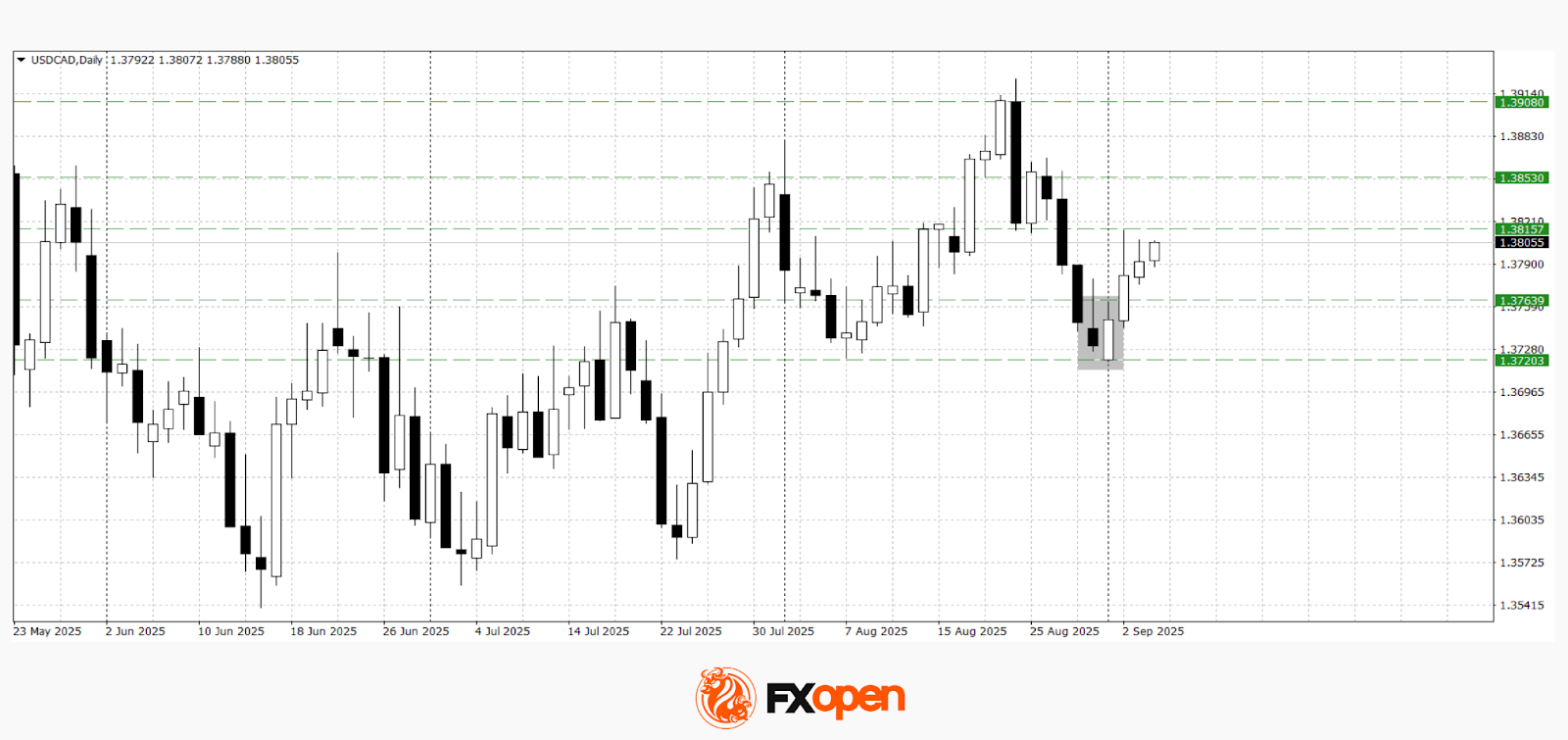 Сегодняшняя статистика из США и Канады добавляет рынкам нервозности: заявки на пособия по безработице, индексы деловой активности (PMI) и данные по внешней торговле могут скорректировать краткосрочные ожидания. Дополнительным драйвером выступает статистика по занятости в Канаде (5 сентября в 15:30 GMT+3), которая способна повлиять на динамику пары USD/CAD.