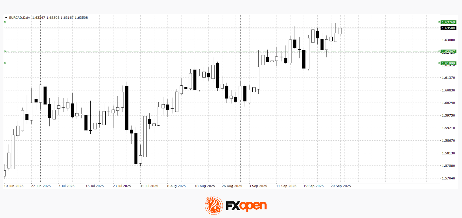 Евро демонстрирует разноплановую динамику: EUR/USD торгуется в фазе консолидации у стратегических уровней, тогда как EUR/CAD продолжает восходящее движение, опираясь на слабость канадского доллара и колебания нефтяных котировок. Такая динамика формируется на фоне ожидания экономических публикаций: в Европе рынок сосредоточен на PMI и показателях инфляции, в США — на отчетах по занятости частного сектора и производственным индикаторам. Угроза приостановки работы правительства США добавляет неопределенности, усиливая осторожность инвесторов. Вектор дальнейшего движения будет зависеть от баланса сигналов по обе стороны Атлантики: более сильная инфляция в еврозоне и мягкие американские отчеты способны поддержать евро, в то время как слабые европейские данные и устойчивые цифры из США/Канады могут стать поводом для углубления коррекции.