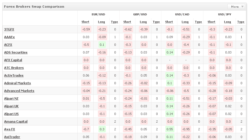 Кстати, при работе с валютными сделками для трейдеров особенно актуальна таблица свопов, которая дает возможность выбрать наиболее подходящего брокера. С помощью таблицы можно быстро узнать, какой у выбранного торгуемого инструмента будет своп.