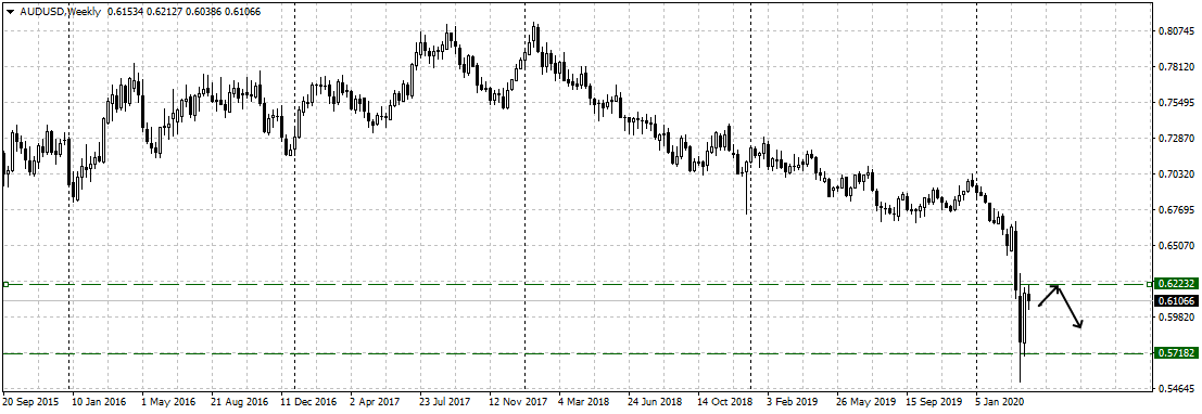 Так, пара aud/usd на прошлой неделе сумела отыграть часть потерь, полученных в марте, и укрепилась больше чем на 600 пп к значимому уровню 0.6200. Но продолжить рост на этой неделе не удалось несмотря на наличие разворотной комбинации «бычье поглощение» на недельном таймфрейме. На данный момент пара торгуется в диапазоне 0.6220-0.6040. Пробой границ данного канала скорее всего определит среднесрочное движение пары. Из фундамента завтра утром ждем данные по объему розничных продаж в Австралии за февраль.