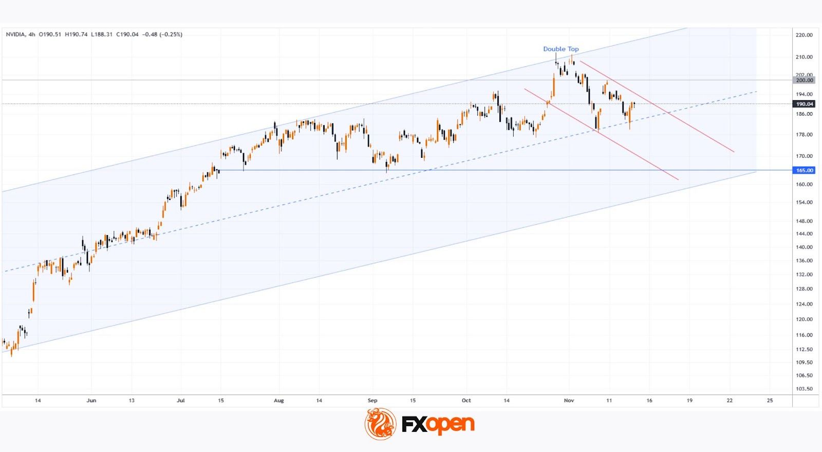 В контексте более широкого рынка, важно заметить, что в начале ноября акция NVDA действует слабее фондовых индексов – подтверждение силы продавцов над уровнем $200.